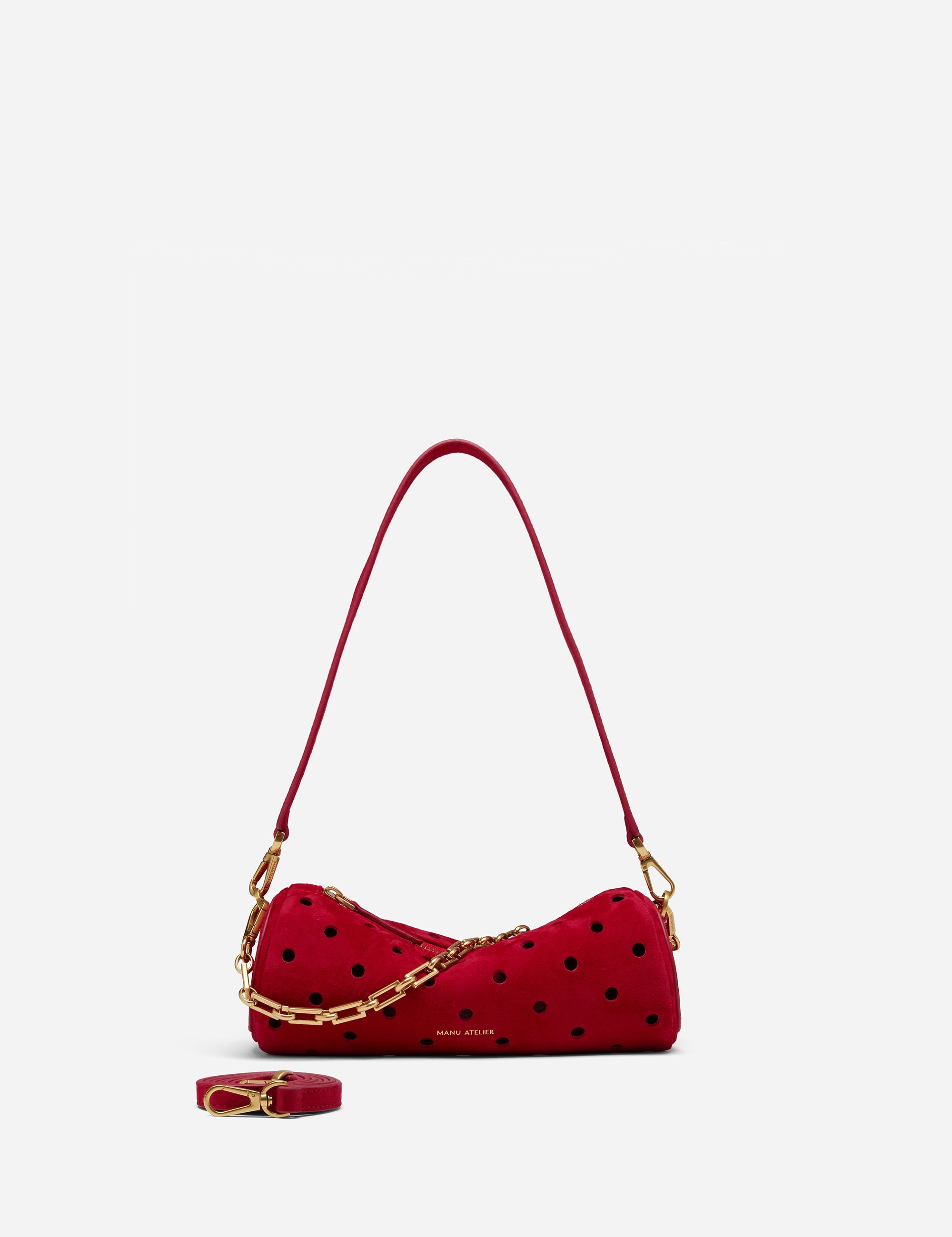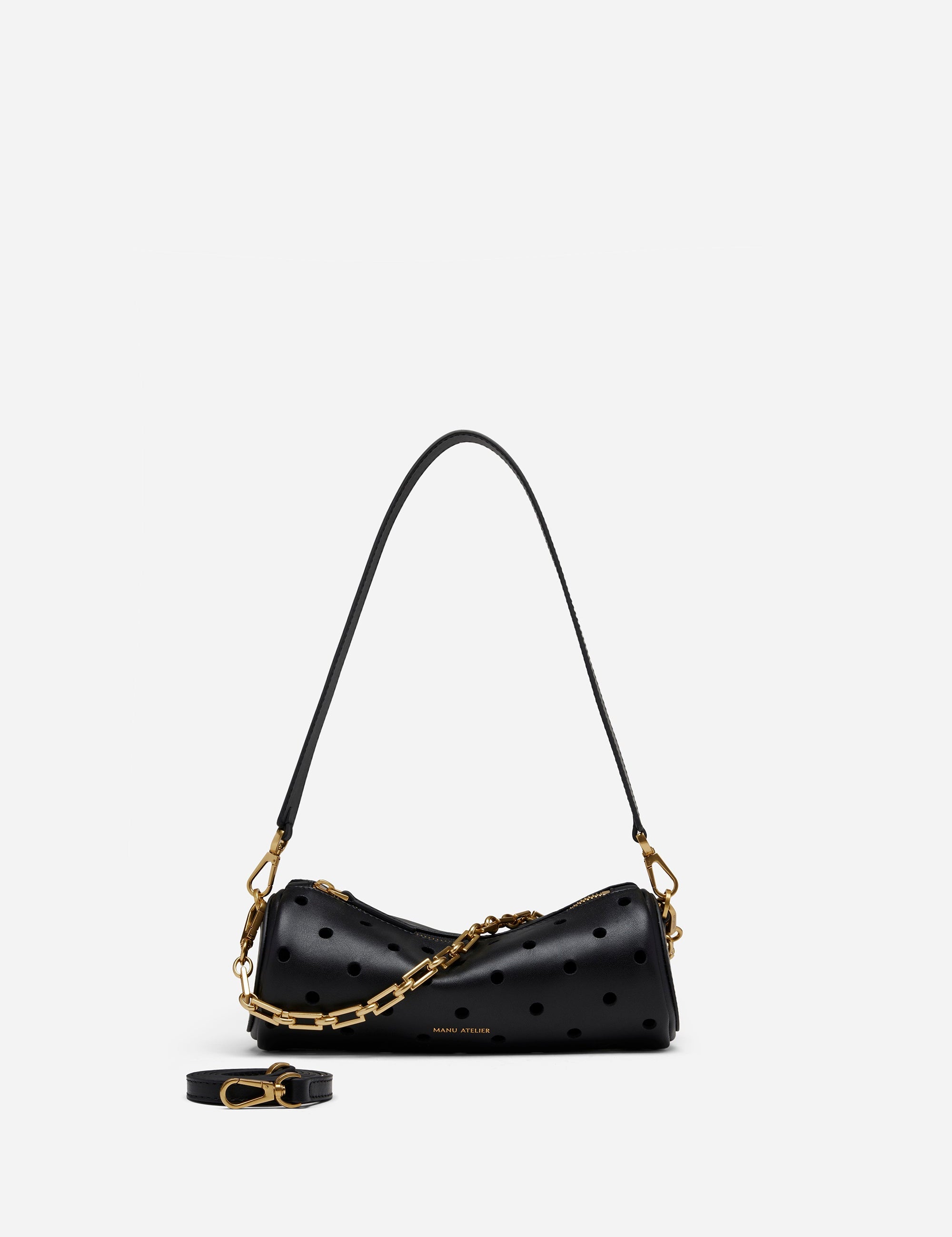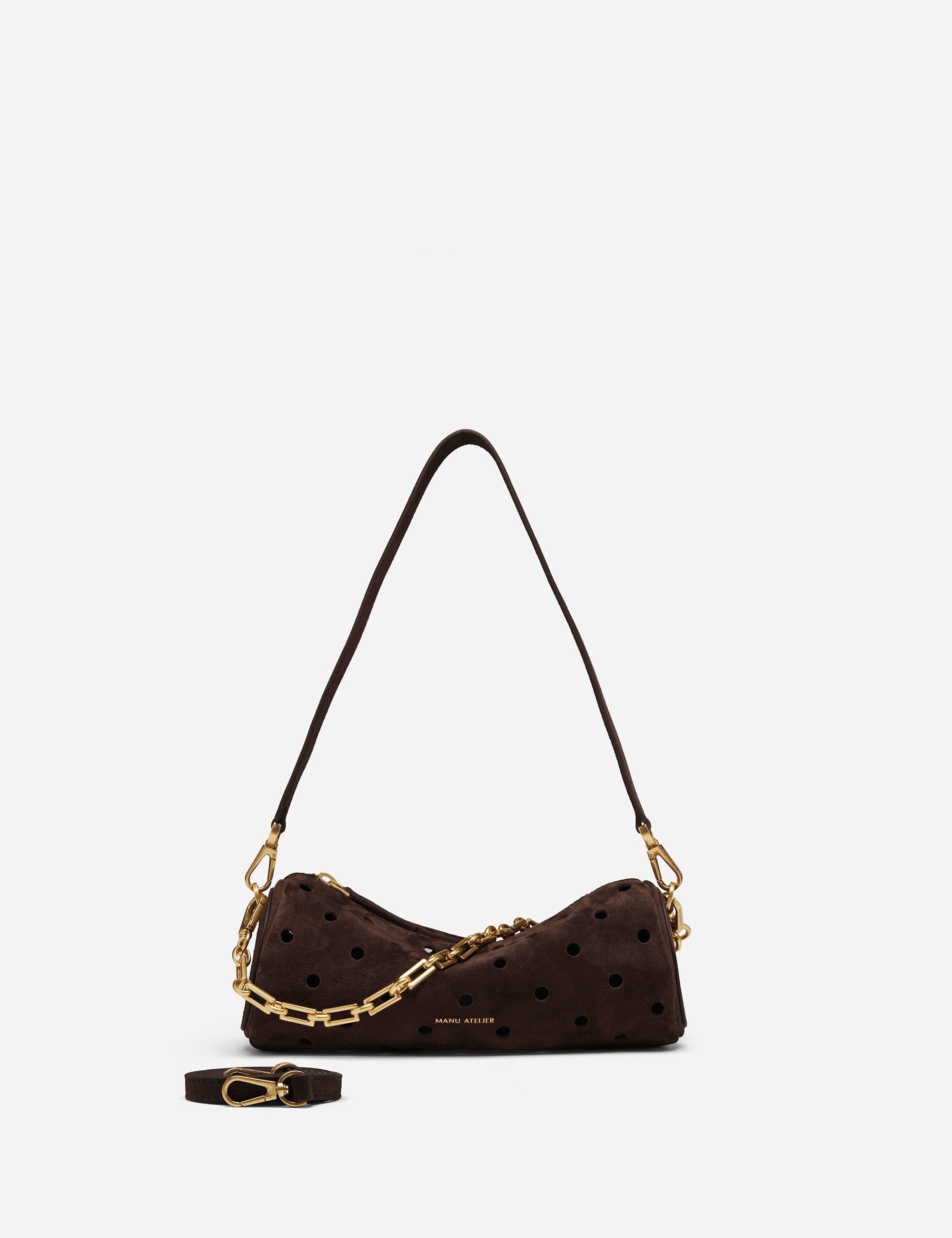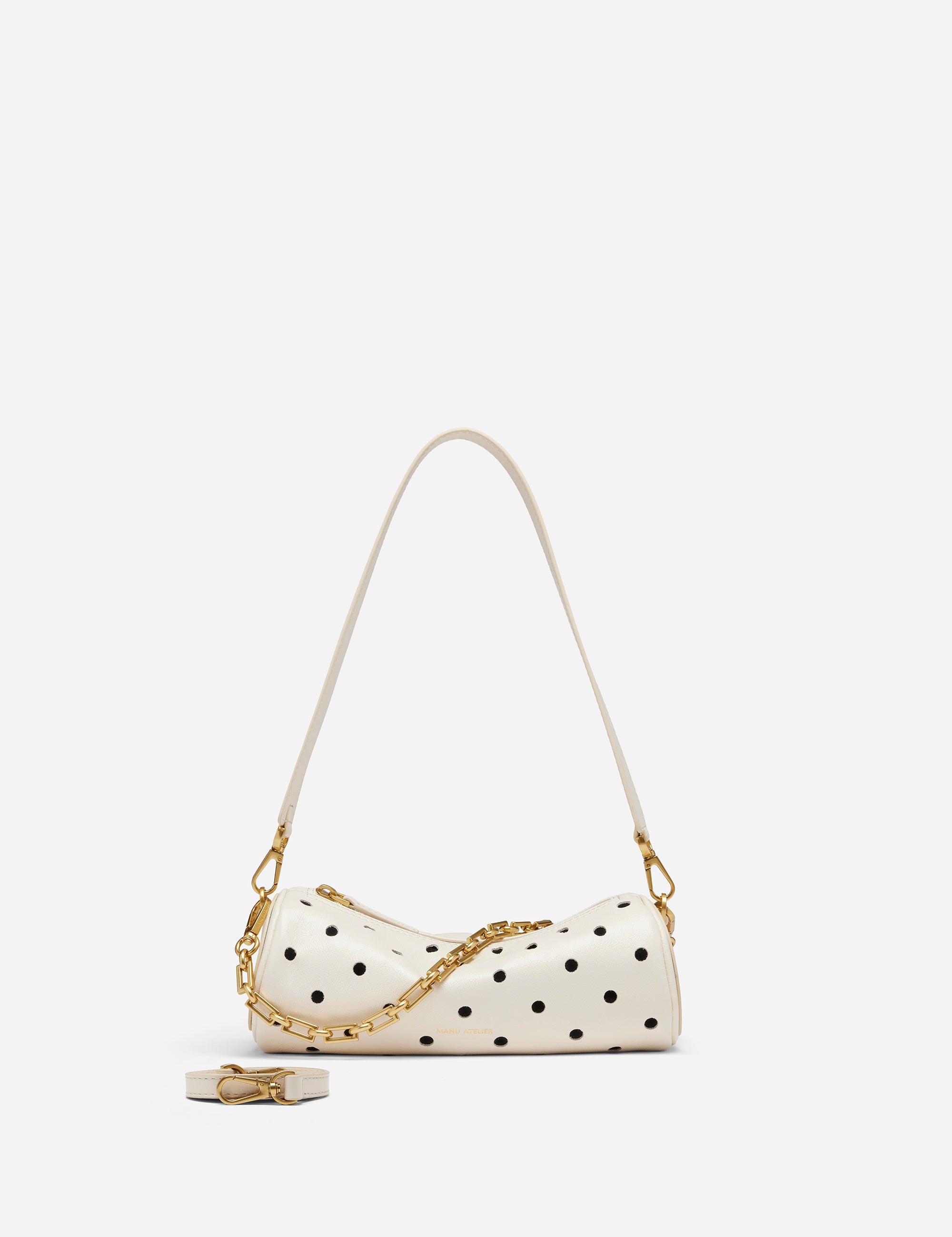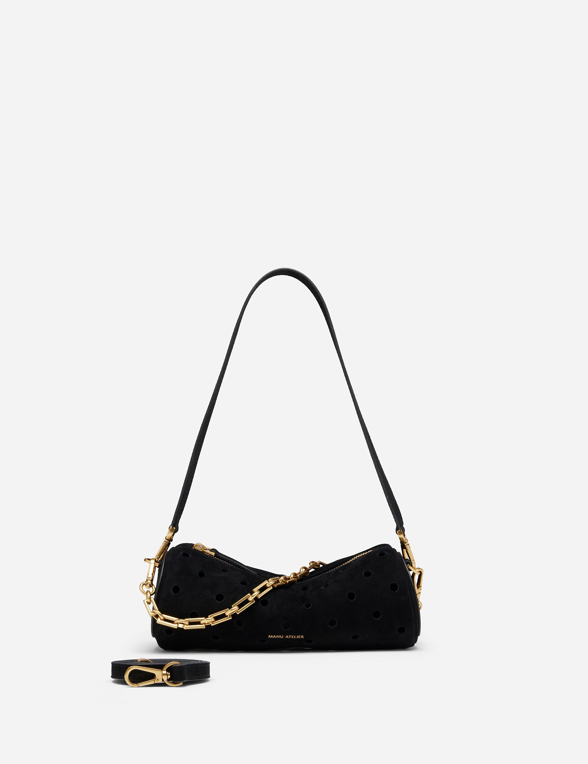 Mini Cylinder Perforated Ecru High Gloss & Black Suede