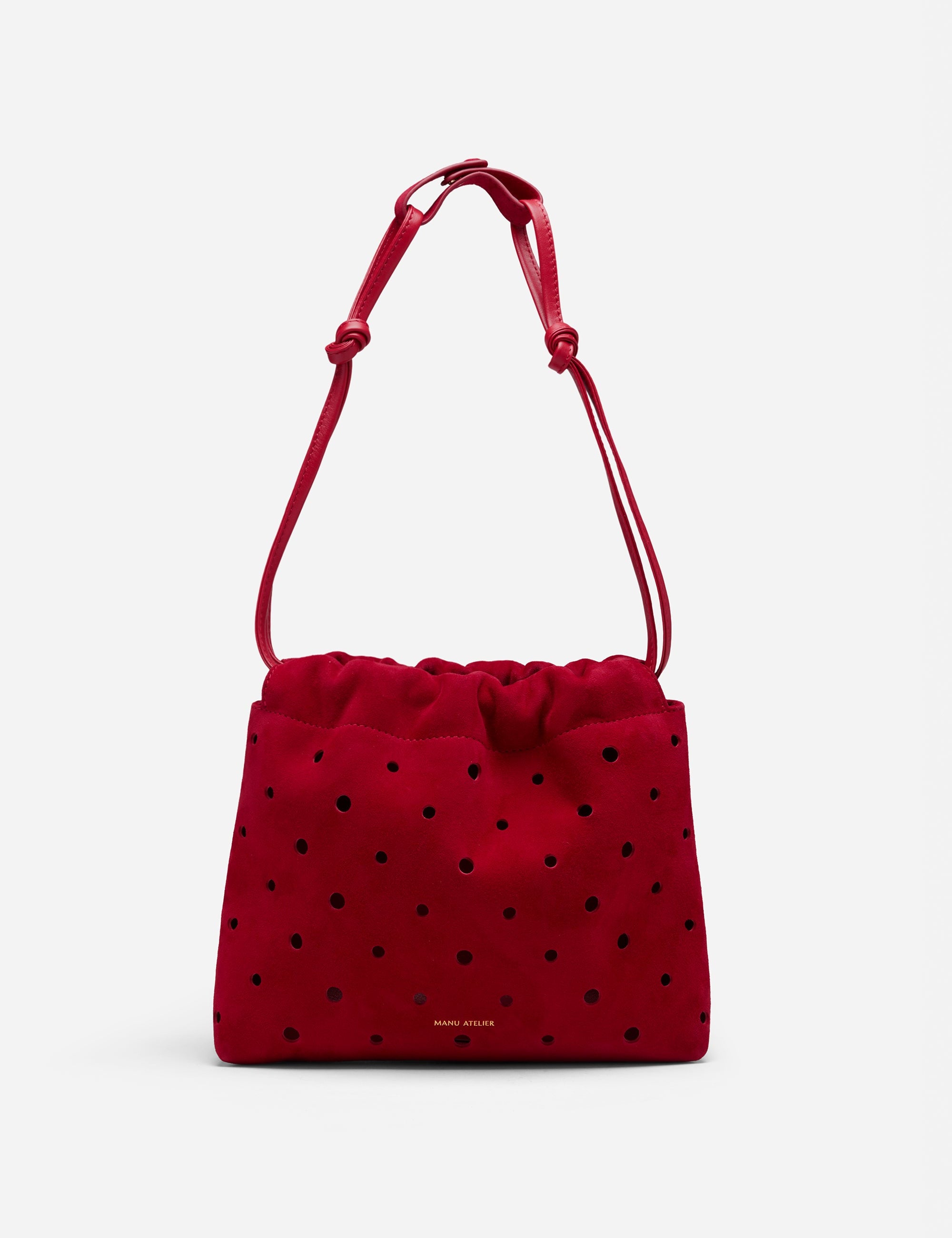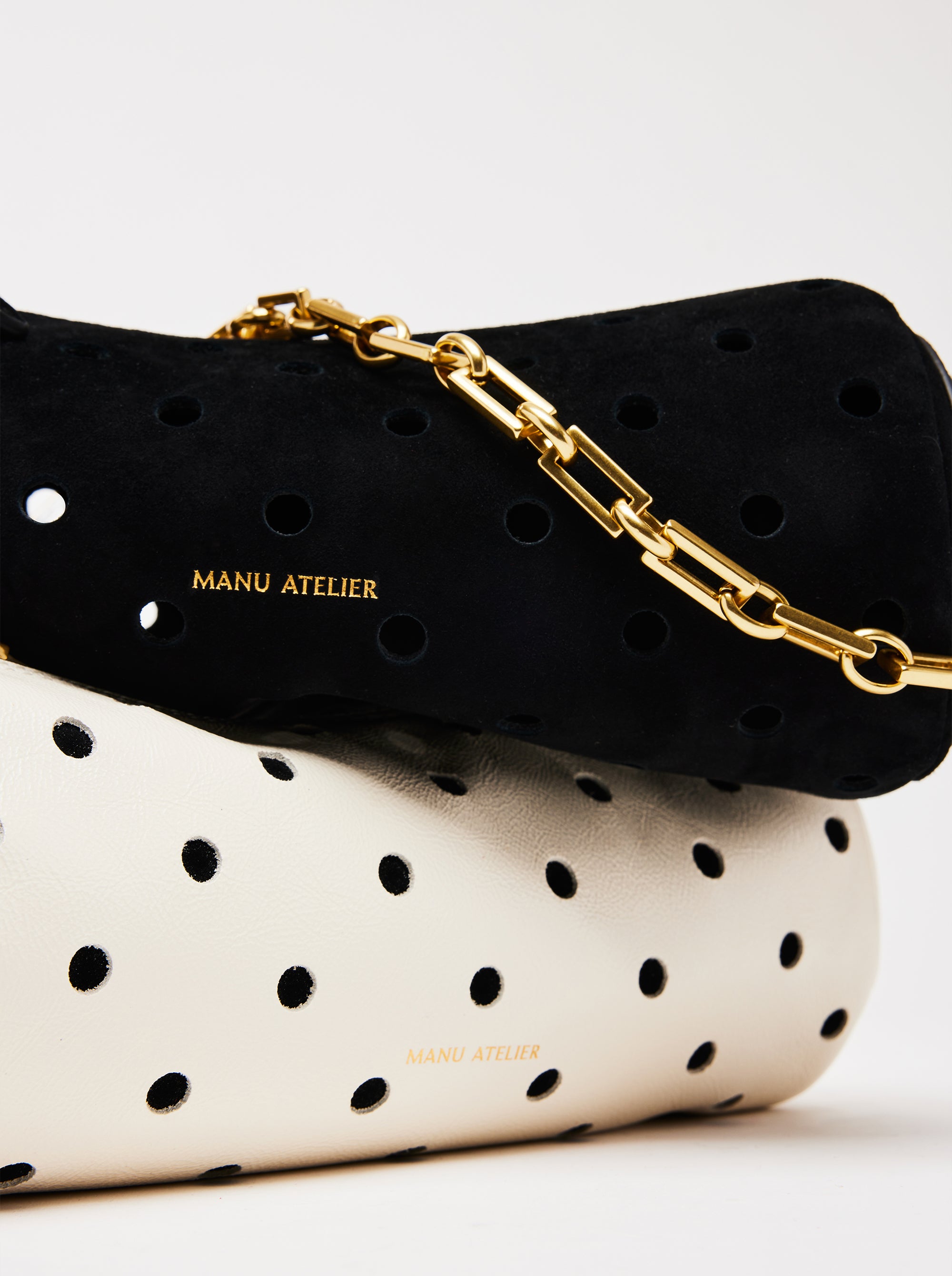 Mini Cylinder Perforated Ecru High Gloss & Black Suede