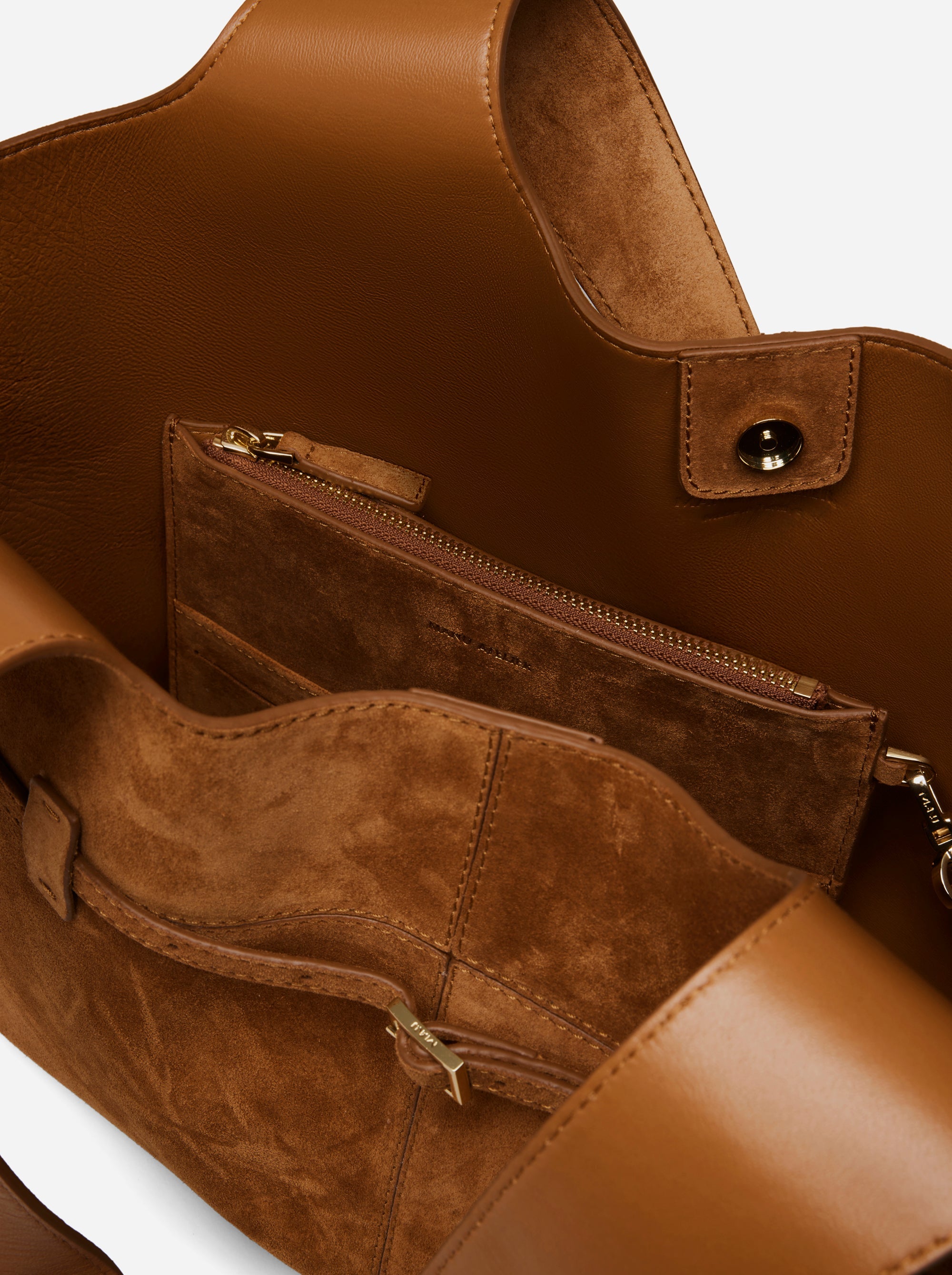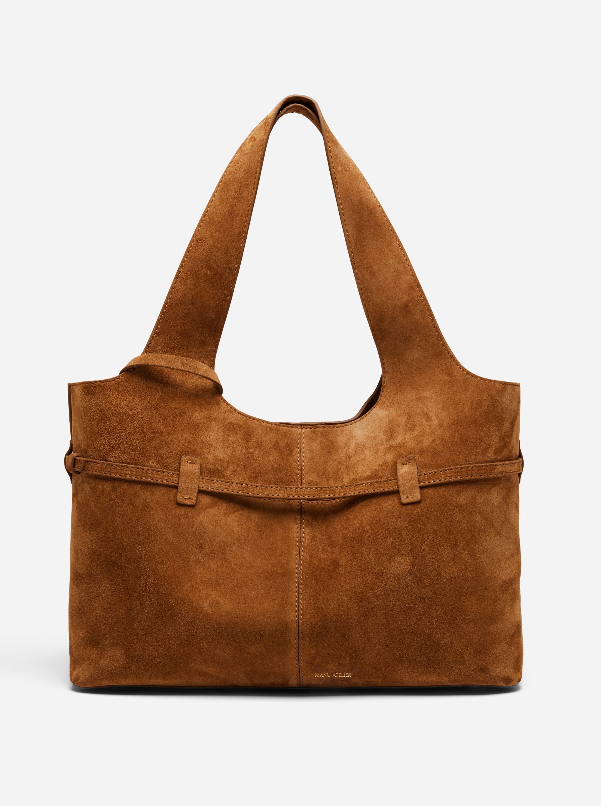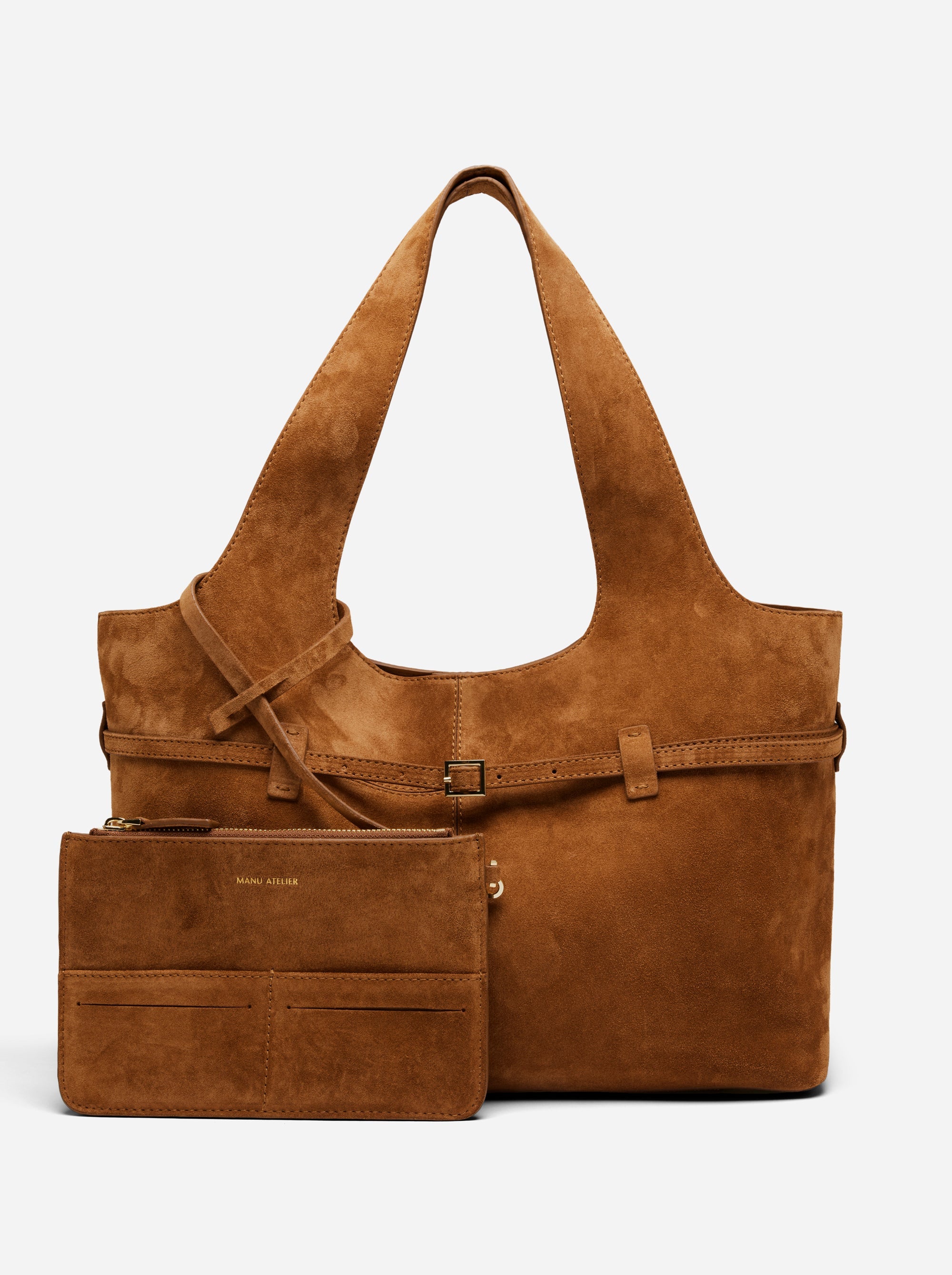 Manu Atelier’s Cambon Cabas in Camel Suede blends a tactile finish with a sleek, relaxed form. Crafted with precise workmanship, this suede-lined tote offers a generously sized interior and a removable pouch—spacious and practical yet compact in feel. Dual top handles ensure comfort, while the softened structure stays elegant for every occasion.