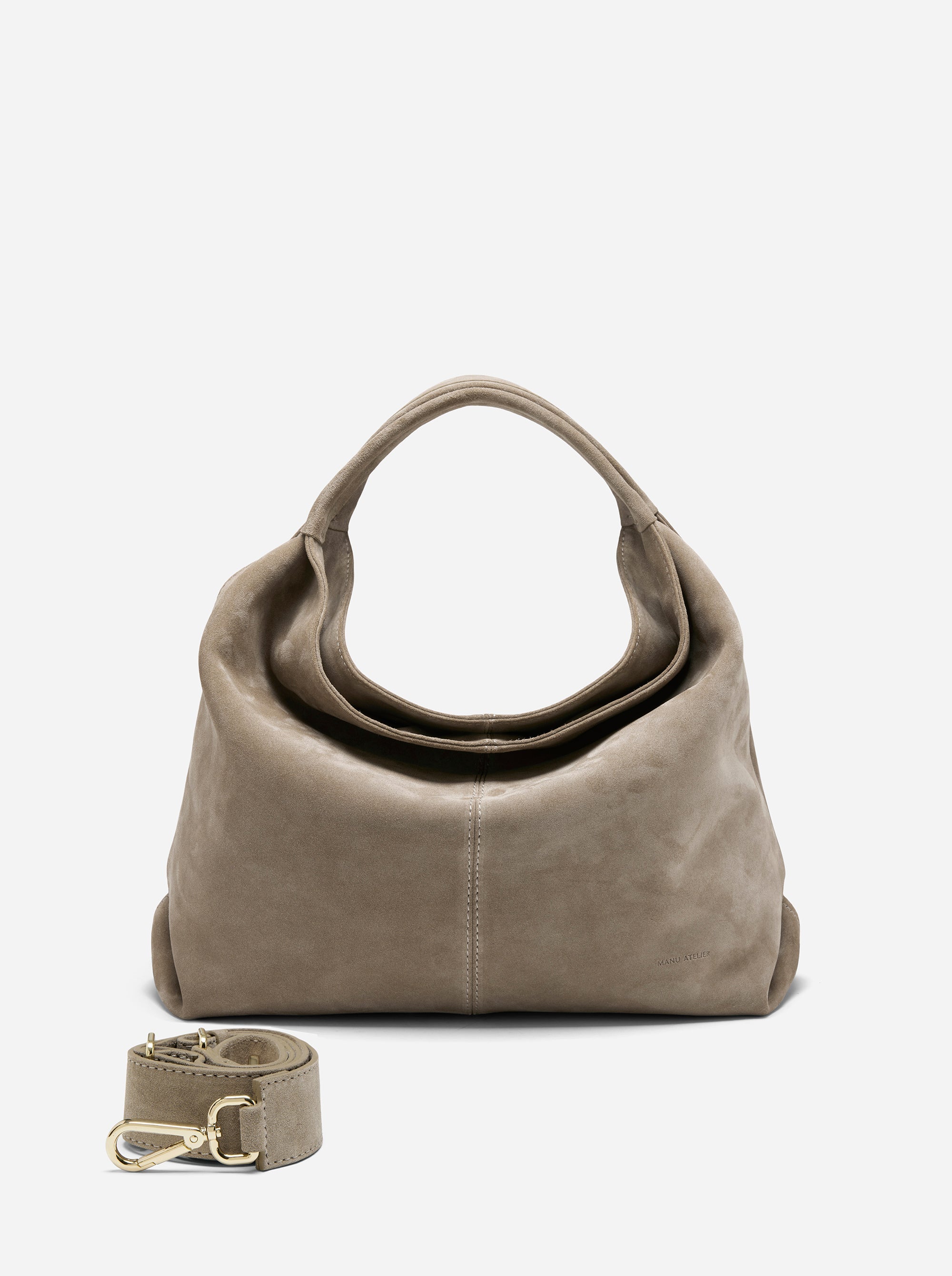 The adjustable leather strap offers versatile wear, allowing it to be styled as a elegant shoulder bag or a sophisticated crossbody. With its unique blend of timeless elegance and contemporary flair, the Gala Sughero Suede bag is a must-have accessory that seamlessly transitions from day to night. Discover the unparalleled craftsmanship and distinctive design of Manu Atelier.