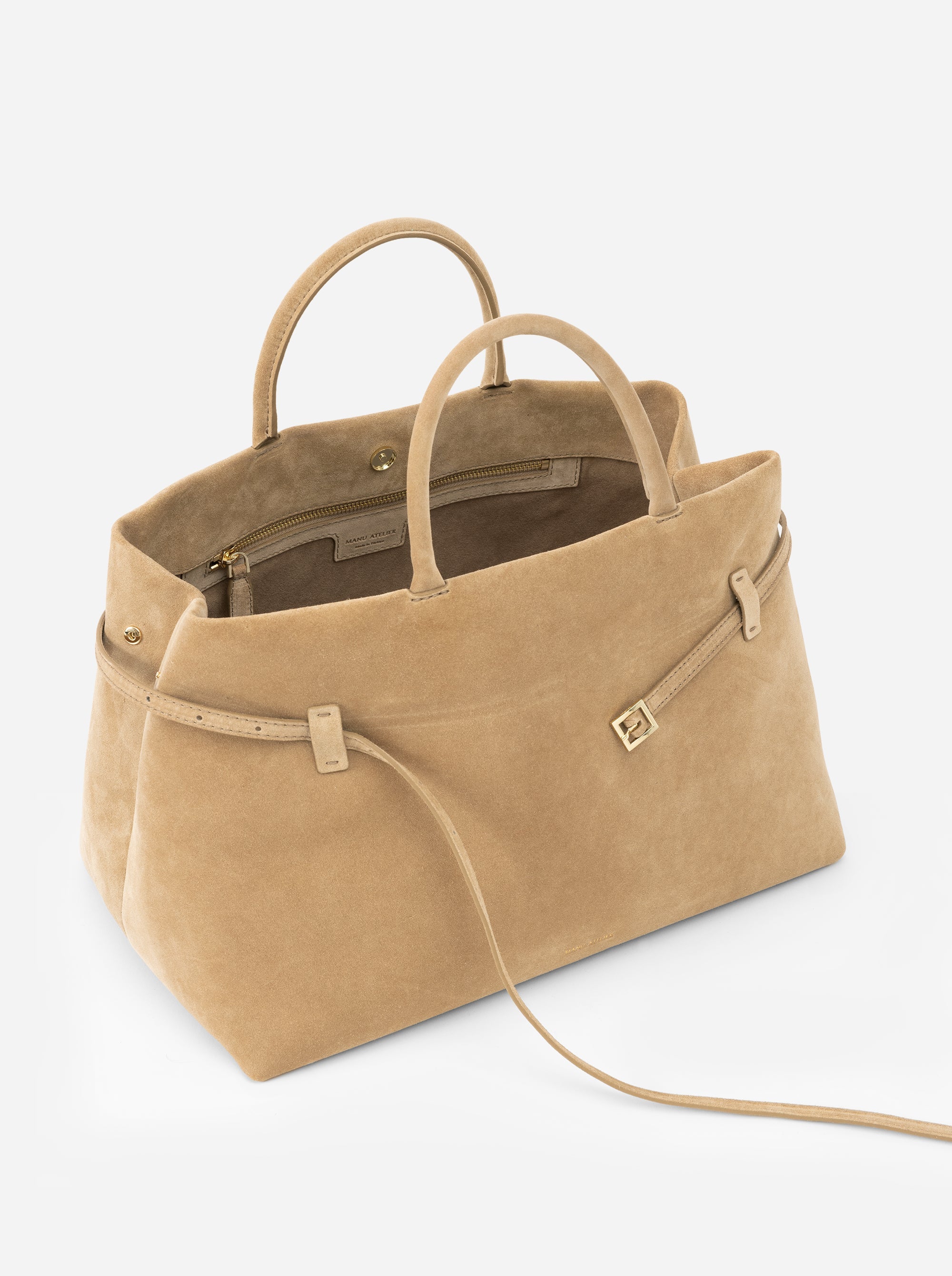 Introducing the latest addition to the Manu Atelier signature pieces, the Le Cambon 40 - a fusion of simplicity and artistry crafted to effortlessly fit into your daily life. Designed with suede leather, this bag blends sophistication with practicality, accommodating a 16-inch MacBook and offering a spacious, softly structured shape for all your essentials. Evolved from the design of Tote du Jour, it transforms the daily bag into a more classic and sophisticated version. With refined contours, two top handles, and a magnetic closure, it elevates everyday style to the next level. This statement piece exudes both practicality and elegance, making it a definitive expression of modern sophistication.