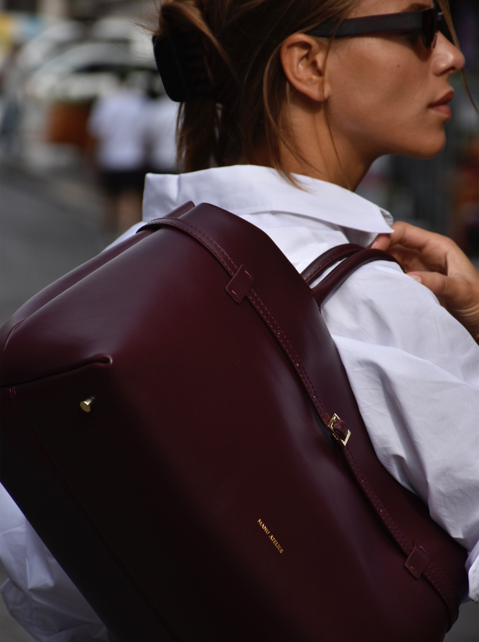 Introducing the latest addition to the Manu Atelier signature pieces, the Le Cambon 40 - a fusion of simplicity and artistry crafted to effortlessly fit into your daily life. Designed with lamb skin leather, this bag blends sophistication with practicality, accommodating a 16-inch MacBook and offering a spacious, softly structured shape for all your essentials. Evolved from the design of Tote du Jour, it transforms the daily bag into a more classic and sophisticated version. With refined contours, two top handles, and a magnetic closure, it elevates everyday style to the next level. This statement piece exudes both practicality and elegance, making it a definitive expression of modern sophistication.