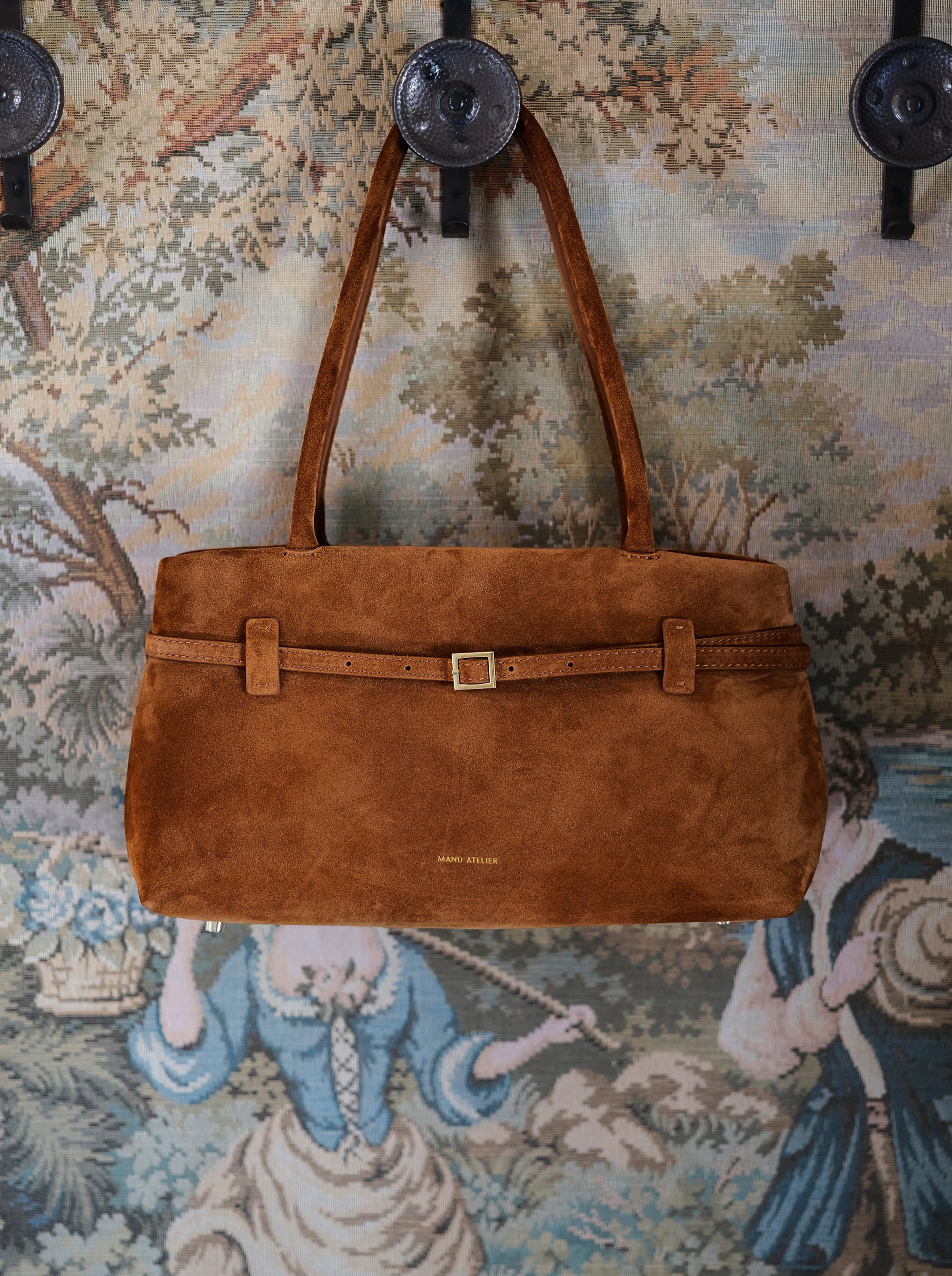 Interior zipped pocket with a Manu Atelier embossed logo