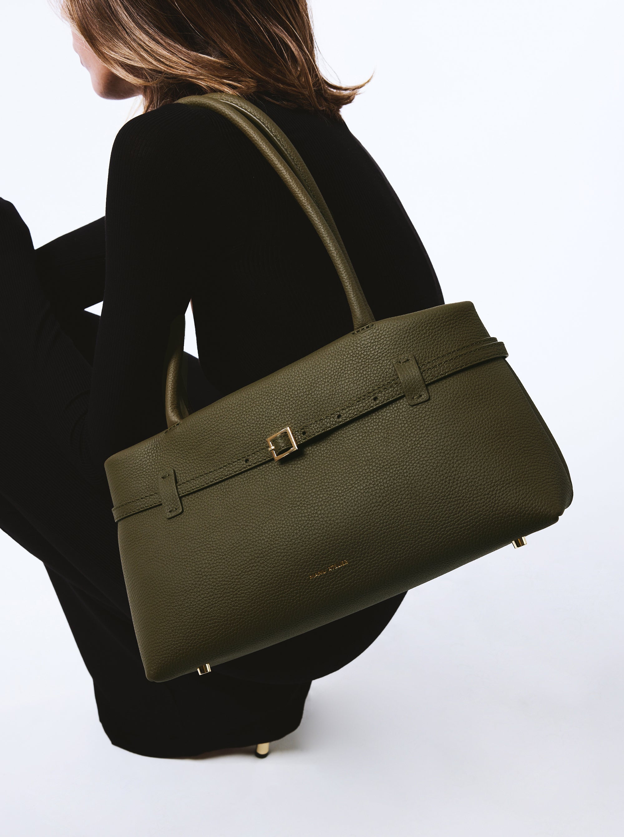 Designed with both elegance and practicality in mind, it features a zipped interior pocket and a removable belt accented with a light gold buckle. With its structured base and comfortable shoulder strap, the Le Cambon East West introduces a retro-inspired shape into daily life—serving as a lasting symbol of contemporary allure.