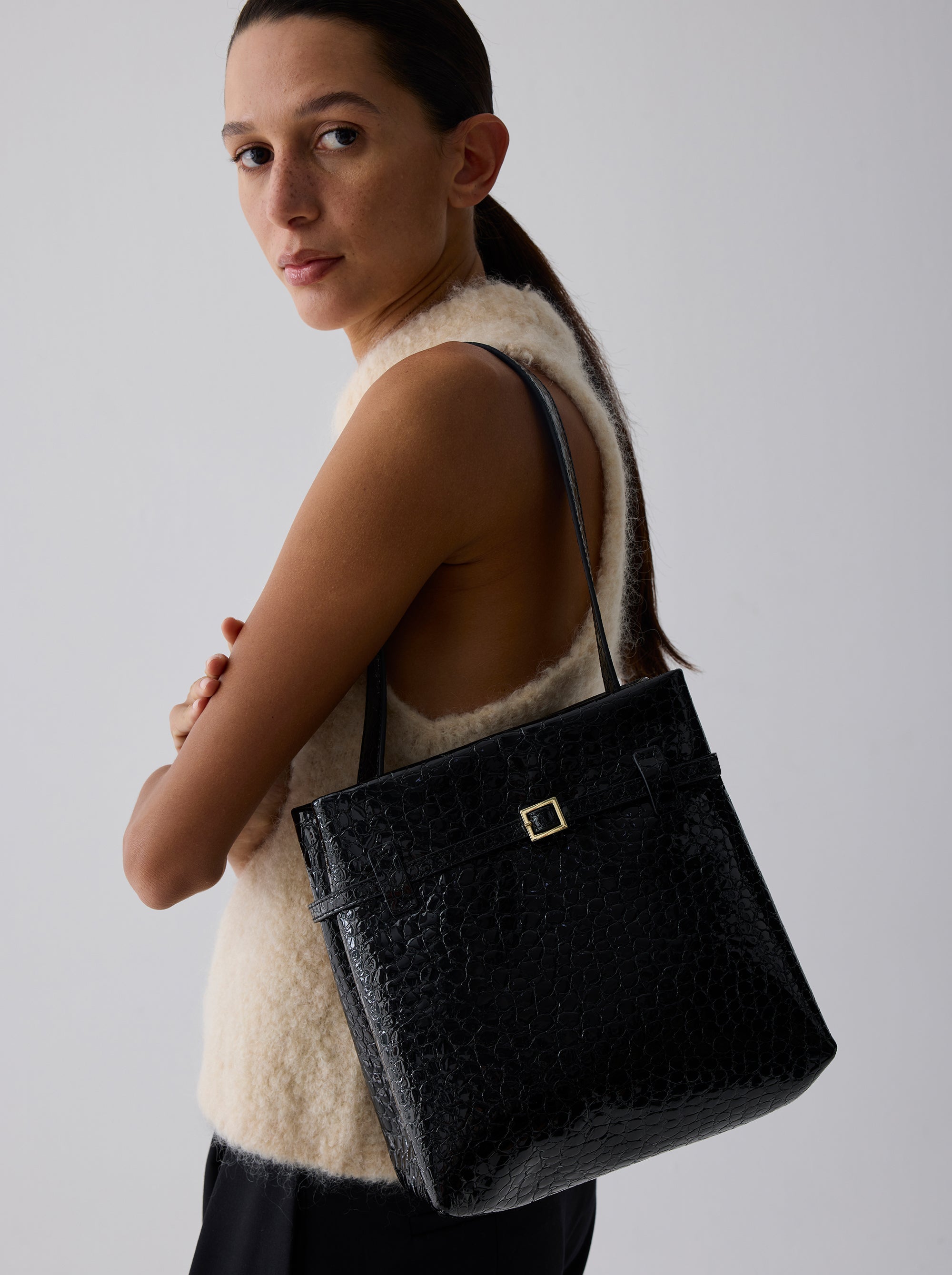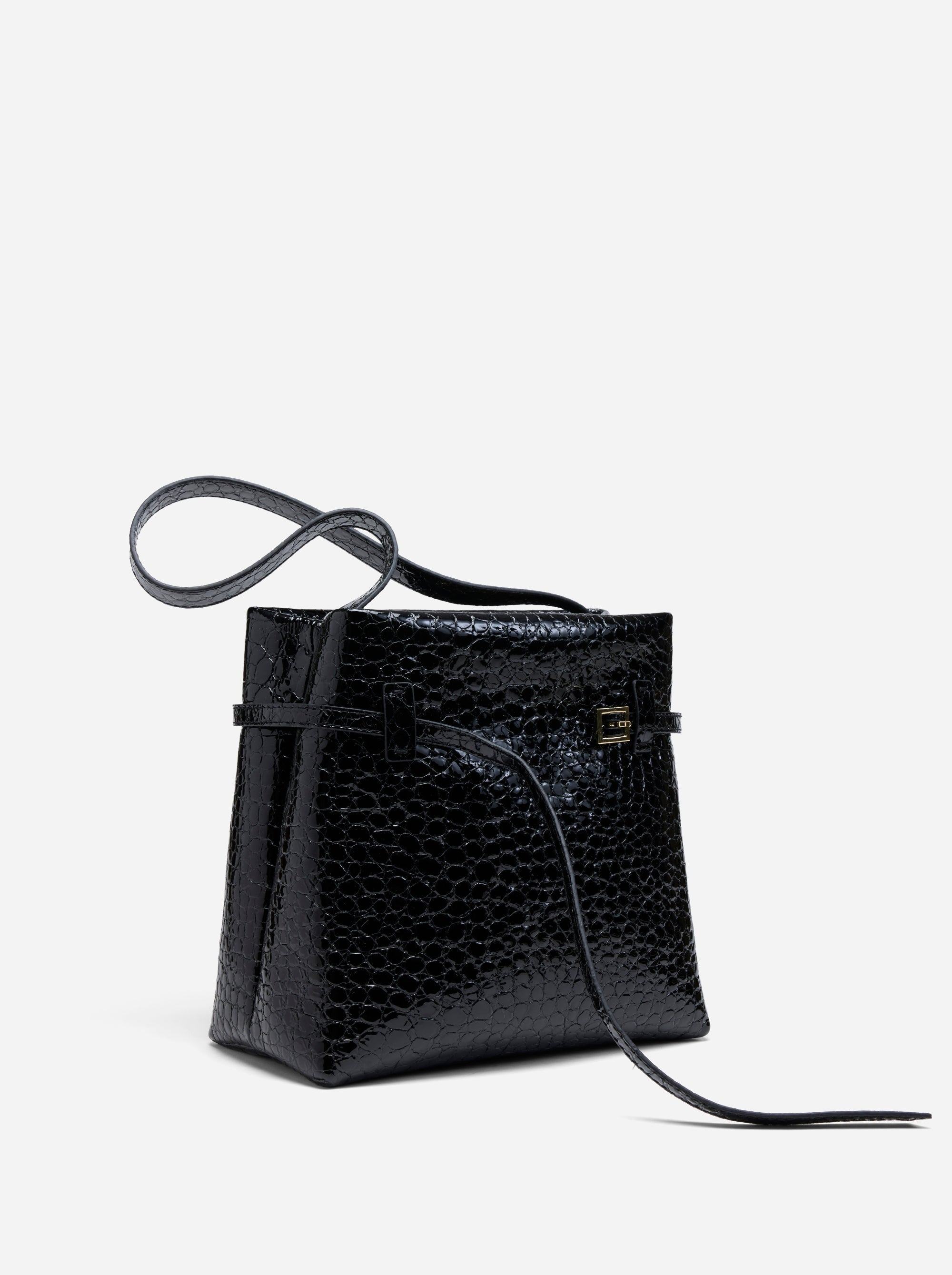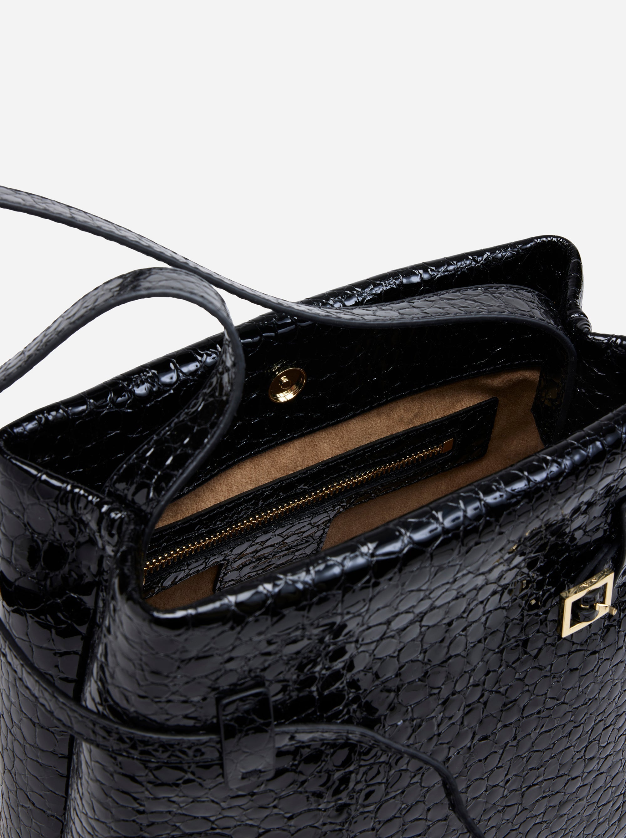 Black Croc Embossed Patent Calf Leather — certified gold-rated by the Leather Working Group (LWG)