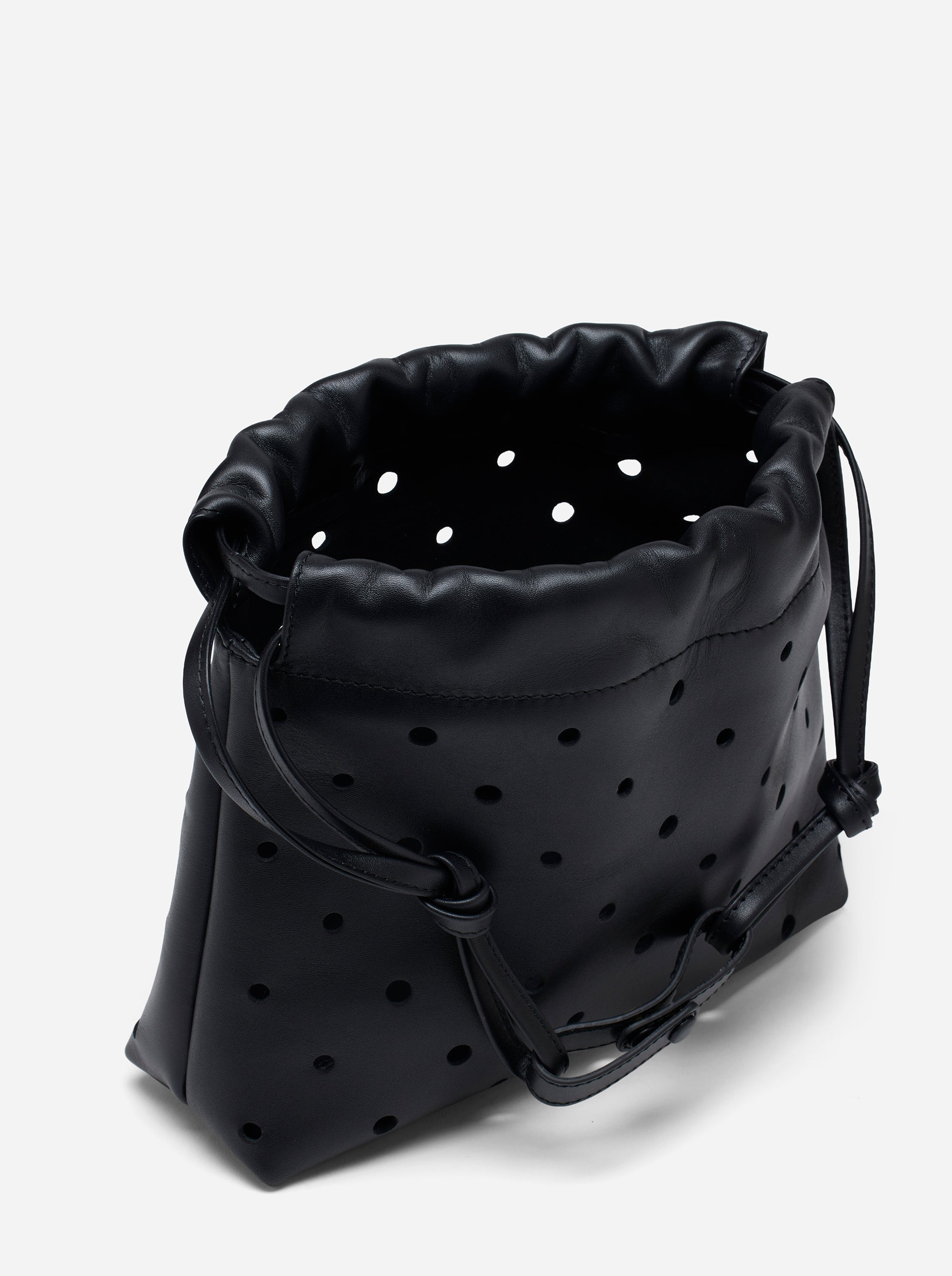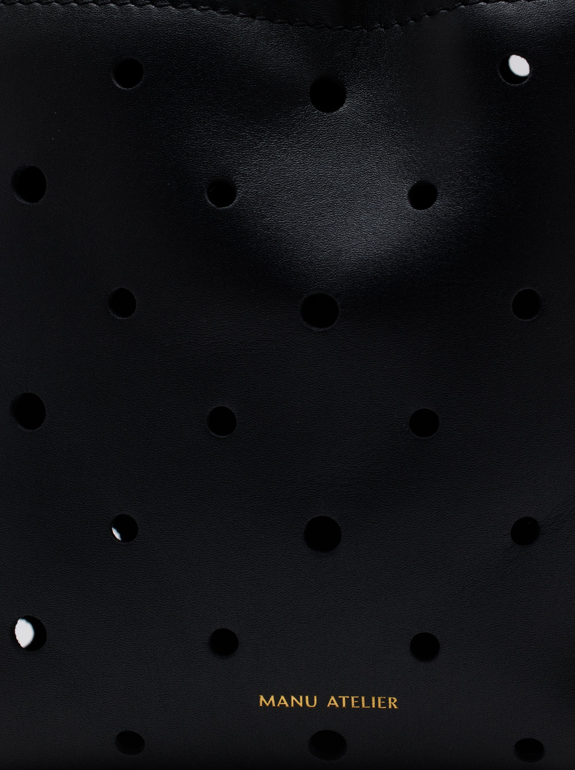 Softly structured yet playfully undone, the Romy Pouch introduces Manu Atelier’s modern approach to craftsmanship. Made from perforated leather both inside and out it highlights the beauty of pure material and meticulous construction. The drawstring construction gathers the leather into gentle, sculptural folds, creating a sense of natural movement and effortless refinement. Designed with versatility in mind, its slender leather strap can be detached, transforming the Romy into a sleek and effortless clutch.