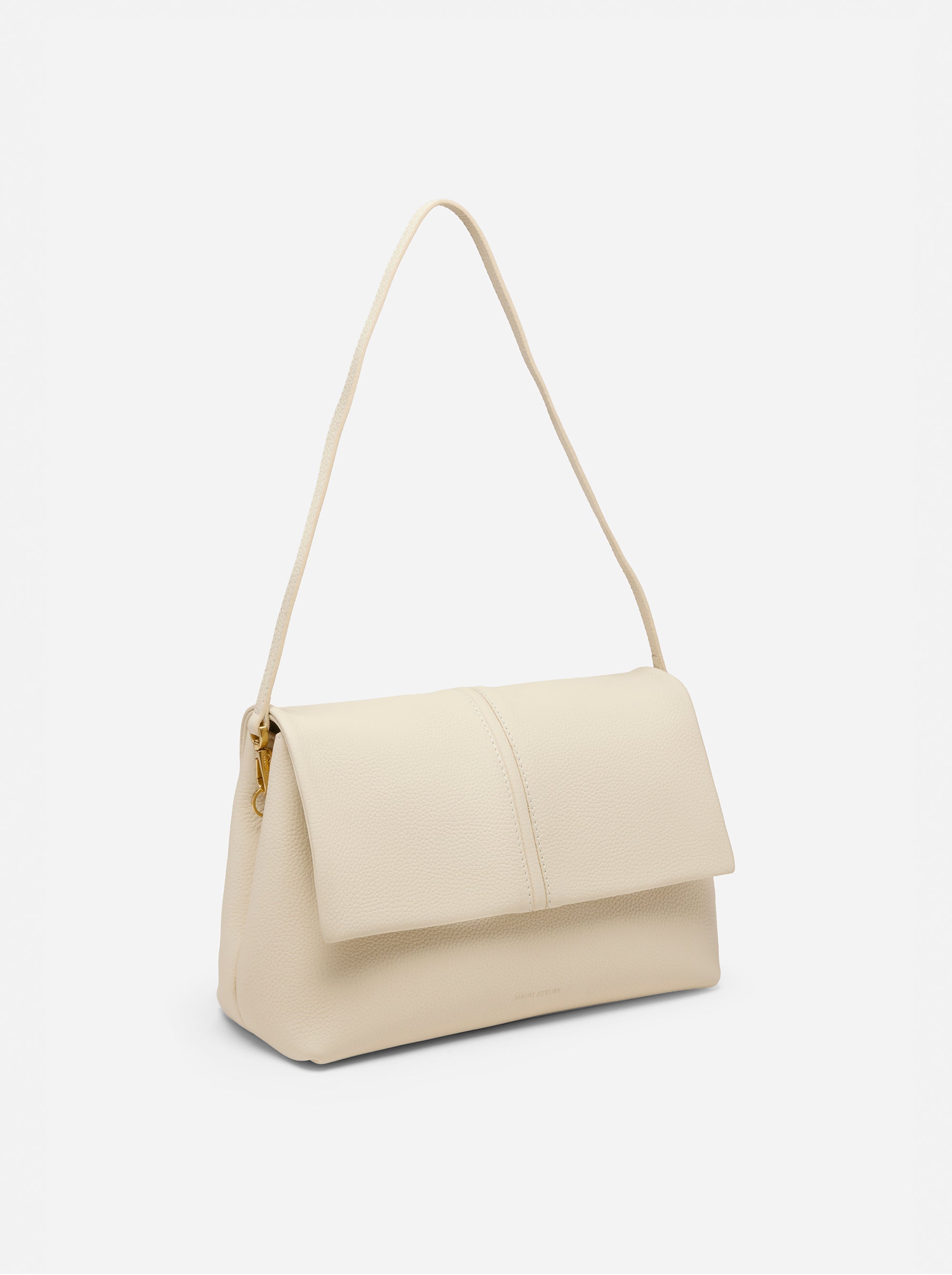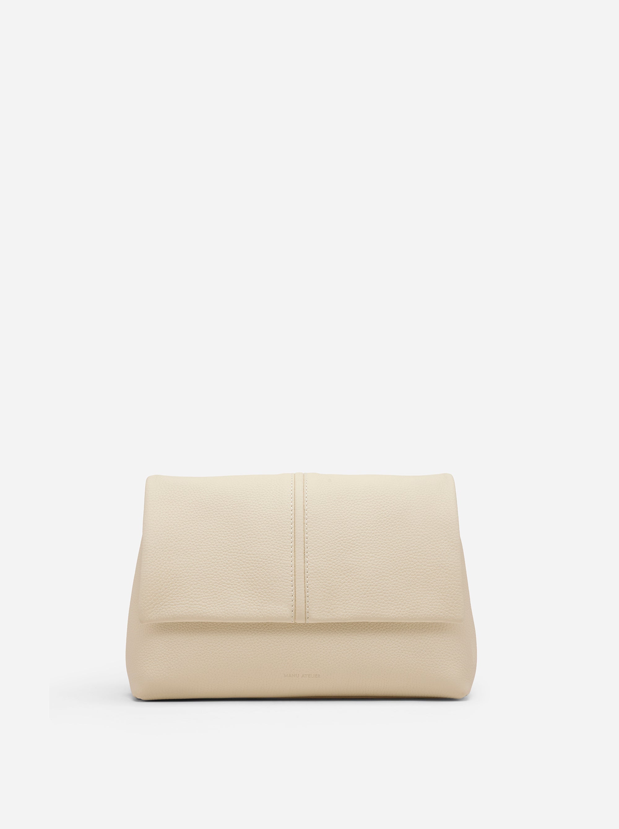 The Fold Bag introduces a new silhouette within Manu Atelier’s universe. Defined by its structure and deliberate sense of ease, its architectural flap settles over a gently contoured body, balancing clarity of form with a subtle softness. The strap can be removed, allowing the bag to shift from a shoulder style to a clean, understated clutch without interrupting its silhouette. Crafted with close attention to surface and construction, The Fold Bag lets each material—textured, smooth, or pattern-driven—shape the mood of the piece, keeping the design grounded in form and intention.