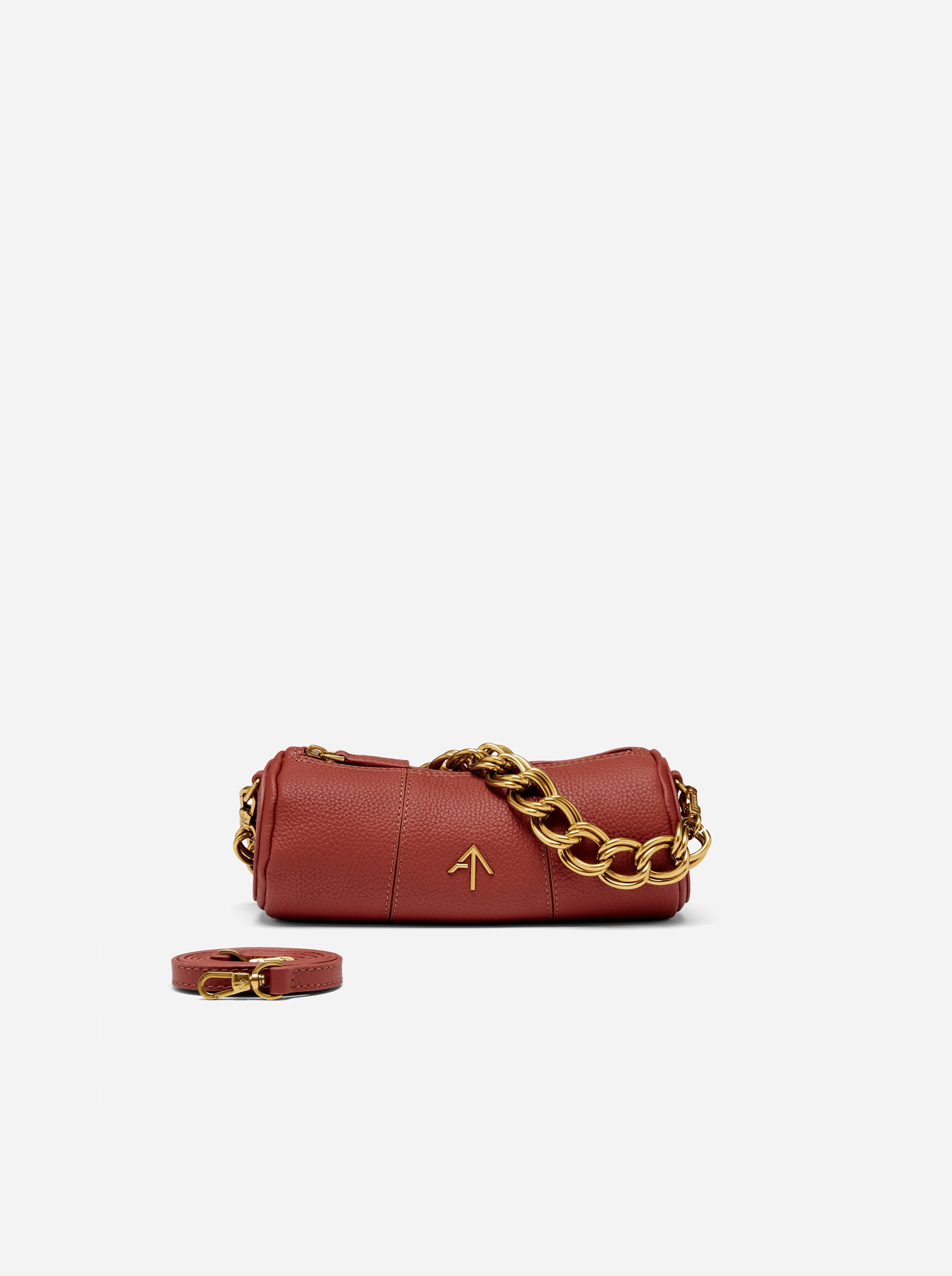 Upgraded with a chunky chain, the XX Mini Cylinder is crafted from supple leather into a three-dimensional circular shape like Cylinder. It has a short chain handle and a long leather strap. You can carry it as a shoulder bag, cross body or grasp it as a handbag depends on your mood. The twill-lined interior is sized to fit your wallet, keys and iPhone comfortably. The new chunky chain will make your day to night look more special while it fits perfectly under your arm.
